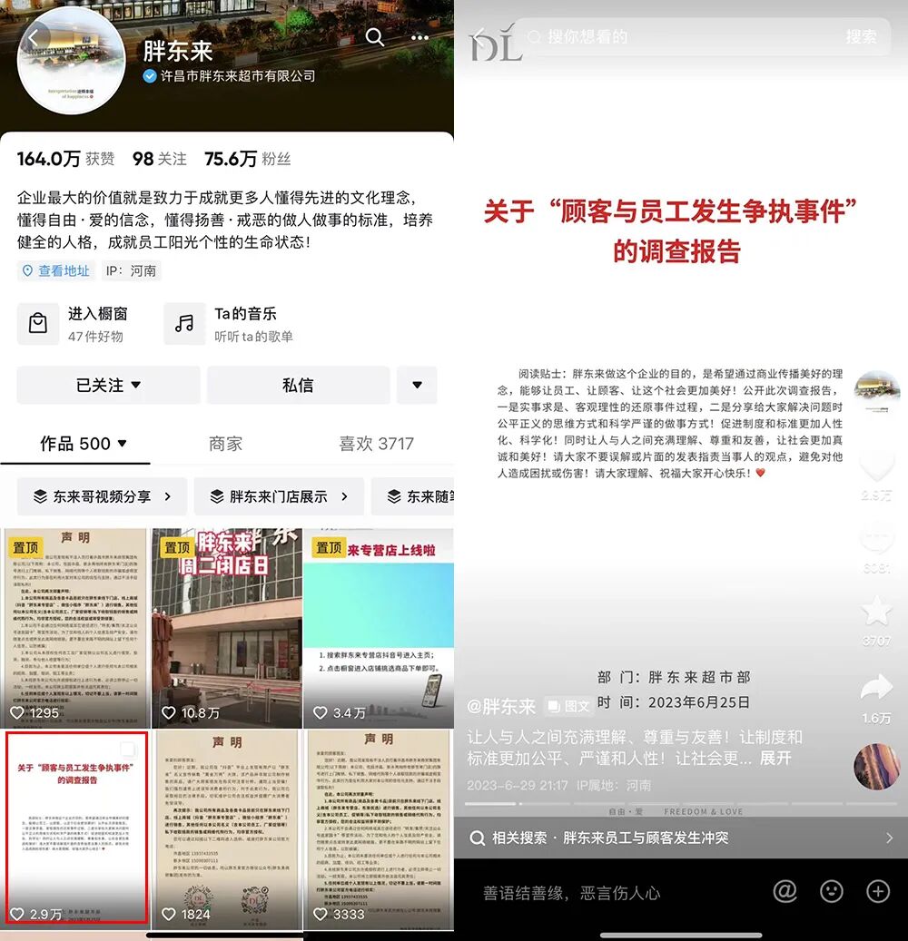 来自“晓影”的监测数据显示,胖东来这次舆情在全网1.7万条,其中,短视频1万条,超过了图文,可能与首发源也在短视频有关。事件经过请点击大叔当时写的文章回看。