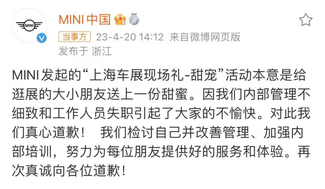 这就是大叔想说的,企业不要试图去借鉴中国电科的“反转”,宝马mini就是一个失败案例。本来已经道歉了,非要再出来强行解释,深怕破坏了宝马与中国人民的情感,但逻辑又过不去,还倒打一耙,让大家原谅那两个女孩,点燃了网友的情绪。