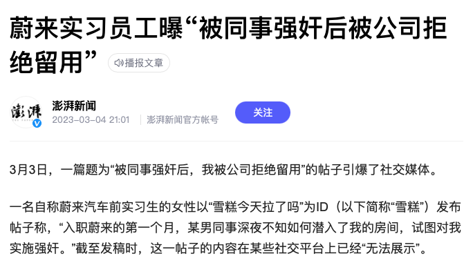 小红书用户的一篇帖子,由于涉及到“qiangjian和拒绝留用”给蔚来带来极大打击。虽然又是一件“烂尾”事件,但其实危机公关的目标实现了,就是没人提了。