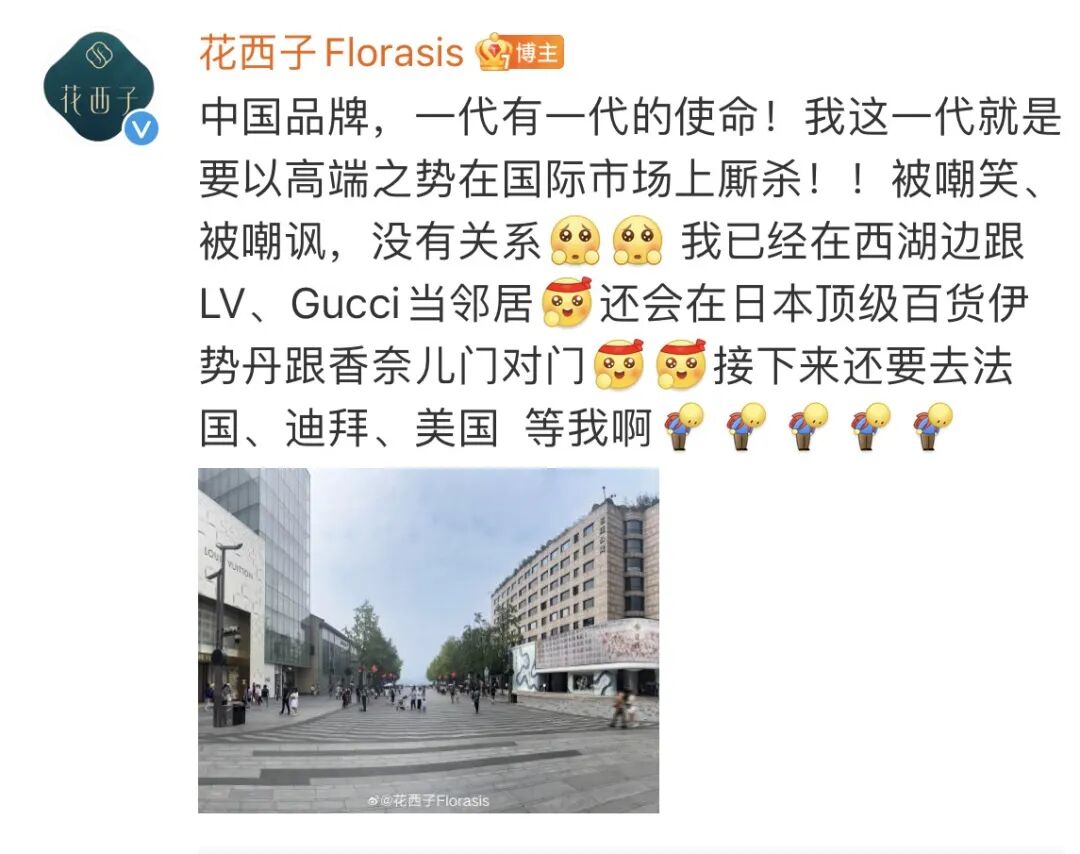 真正想说的:我们是走向国际的中国品牌,在杭州和LV肩并肩,在日本和香奈儿面对面(厉害吧)。