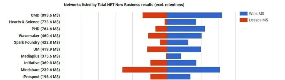 全球媒介集团新业务表现排名(数据来源:COMvergence)