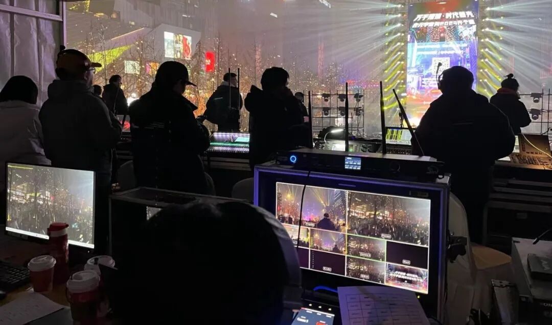 能做到这样虚实融合的直播效果,是基于世优科技的无人机虚拟跟踪航拍技术,本次创新突破了传统虚拟跟踪中,角度、高度等不同维度的限制,实时将无人机航拍画面叠加4K超高清虚拟内容,向屏幕后的观众们呈现出前所未有的拍摄视角。同时,世优科技凭借虚拟数字人技术,配合成都交子大道周围宏伟的建筑群,以及双子塔的光影交互,与现场导演及团队共同完成了,国内前沿的无人机虚拟航拍直播演出。