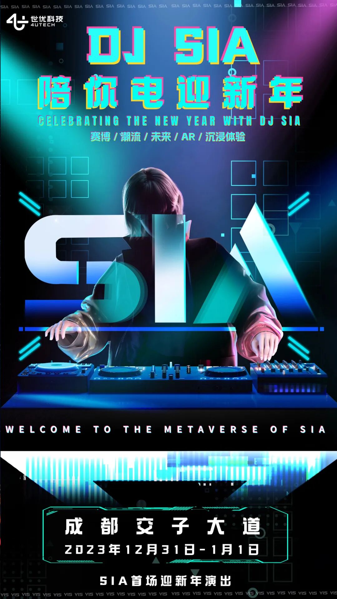 伴随实时变换颜色角度的灯光,虚拟数字人“SIA”在成都交子大道的数字大屏幕中,担当了现场DJ的角色,将自己独特的风格融入到表演中,随着电音调律的不断变化,身体和视角跟随摇摆,引导观众沉浸式感受现场热烈的氛围并参与其中。