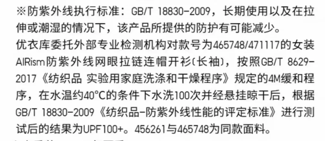 优衣库的产品经过了完善的第三方检测认证体系的测试,并主动公布由权威机构出具的性能报告,包括防晒指数、透湿率、防水性能等核心指标。