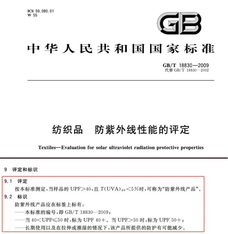 据国家标准GB/T 18830—2009规定,只有当紫外线防护系数(UPF)大于40且UVA透过率小于5%时,产品才能被定义为防紫外线产品。