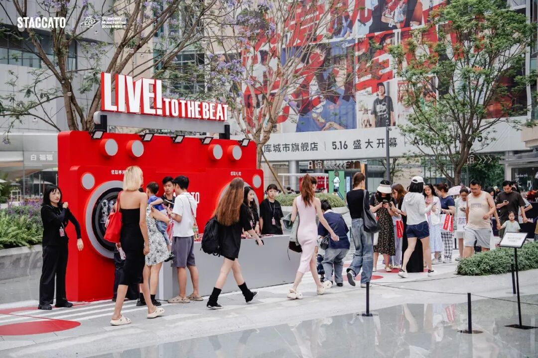 2025年5月的成都万象城水游广场,草莓音乐节的音浪在这里迸发。思加图与草莓音乐节联名的快闪活动在此落地,以极具潮流感的装置、沉浸式的互动体验,吸引大批年轻人驻足打卡。