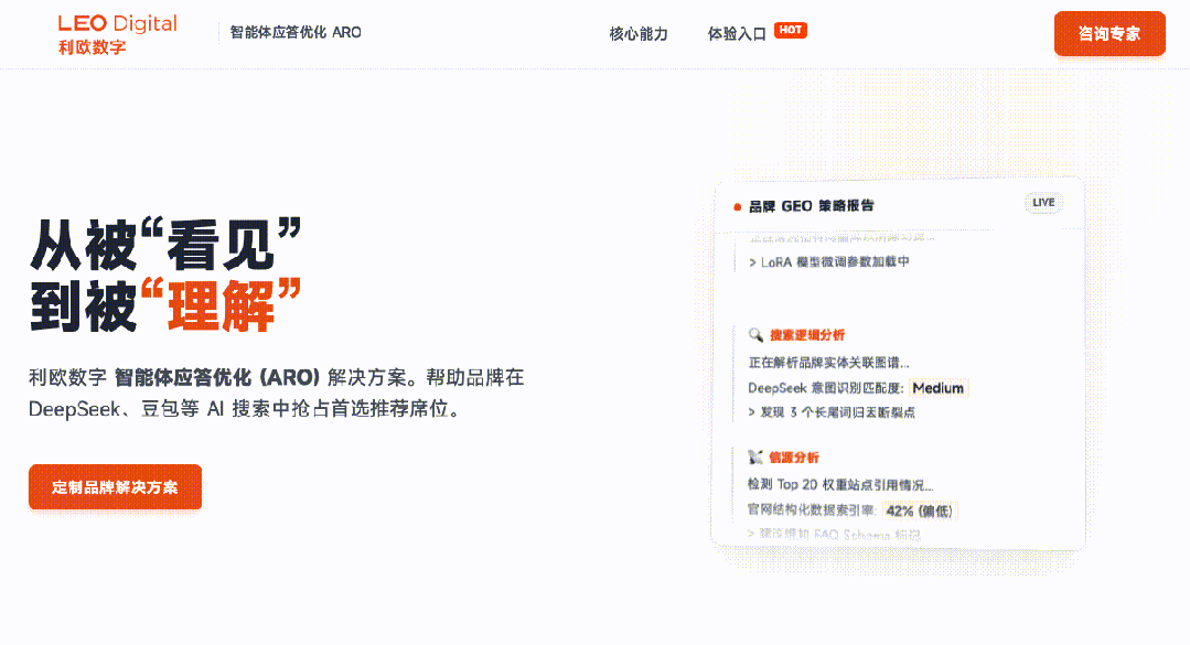 “智能体应答优化”平台 aro.leo.cn 现已上线,从预测提问意图到定制策略报告,从生成内容矩阵到追踪数据效果,各项体验入口已准备就绪,欢迎体验!
