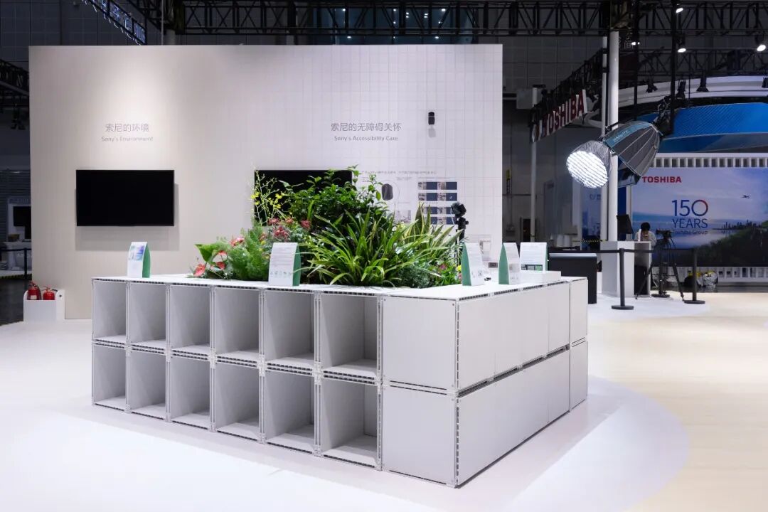 质感,藏于细节。我们大量采用了SONY研发的SORPLAS可编辑砖作为展桌核心材料。这些可循环利用的“生态砖”,不仅拥有独特的肌理,其模块化特性更让搭建与回收都变得高效。当观众触摸到它们时,可持续不再是一个抽象概念,而是一种可被感知的、扎实的质感与温度。