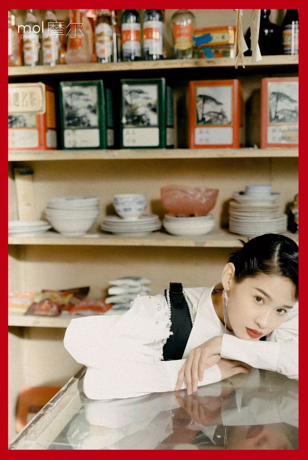 初次认识屈菁菁是在mol新春特辑的拍摄中,去门口迎接她,刚出门就看到一辆车疾驰而过,工作人员在一旁说:“是她”。有时能从一个人开车的速度和架势中判断性格,险些以为是个外在冲撞感十足的女孩,过了一会她从停车场走过来,温和细声地打着招呼,没有急着刻意讨好却也不失礼貌近亲。第一印象和她在《大人物》里扮演的角色倒是略有相似,常态下悠哉斯文,一旦触发某个“预警按钮”就开启加速模式。